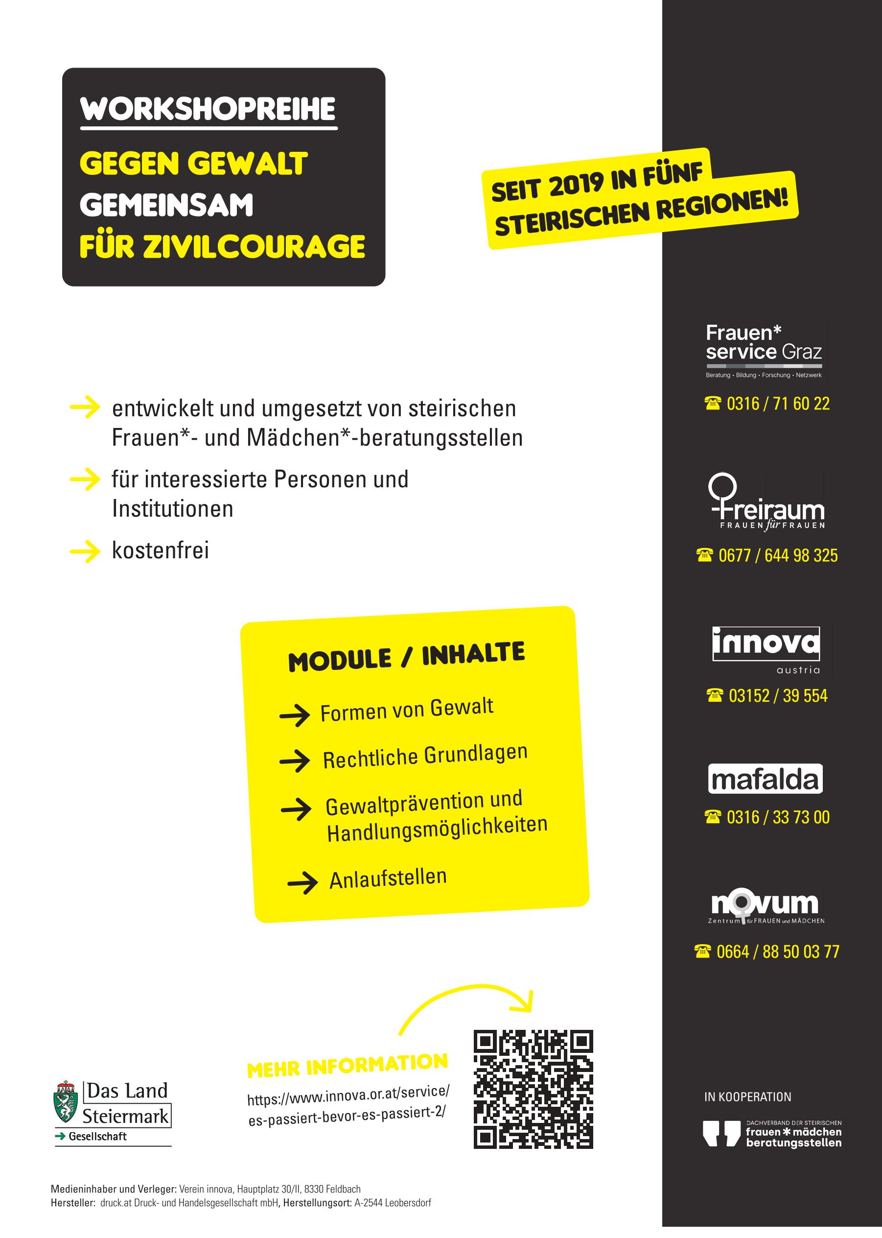Die kostenlosen Workshops richten sich an Menschen aus der Allgemeinbevölkerung oder Organisationen und werden in Kooperation mit regionalen Frauen*- und Mädchenberatungsstellen organisiert und durchgeführt.